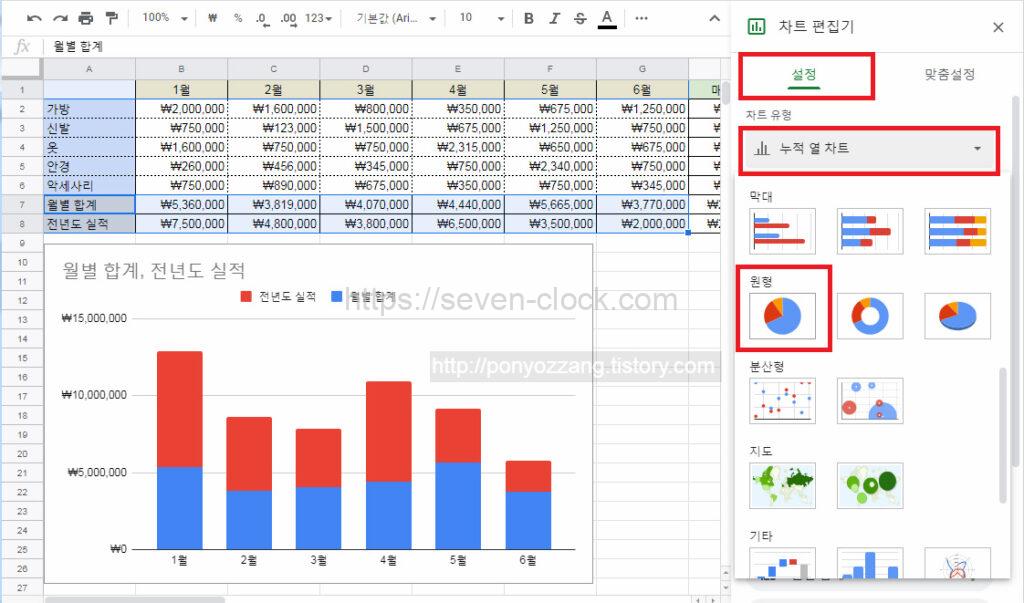 구글 스프레드시트 원형 차트 그래프 만들기