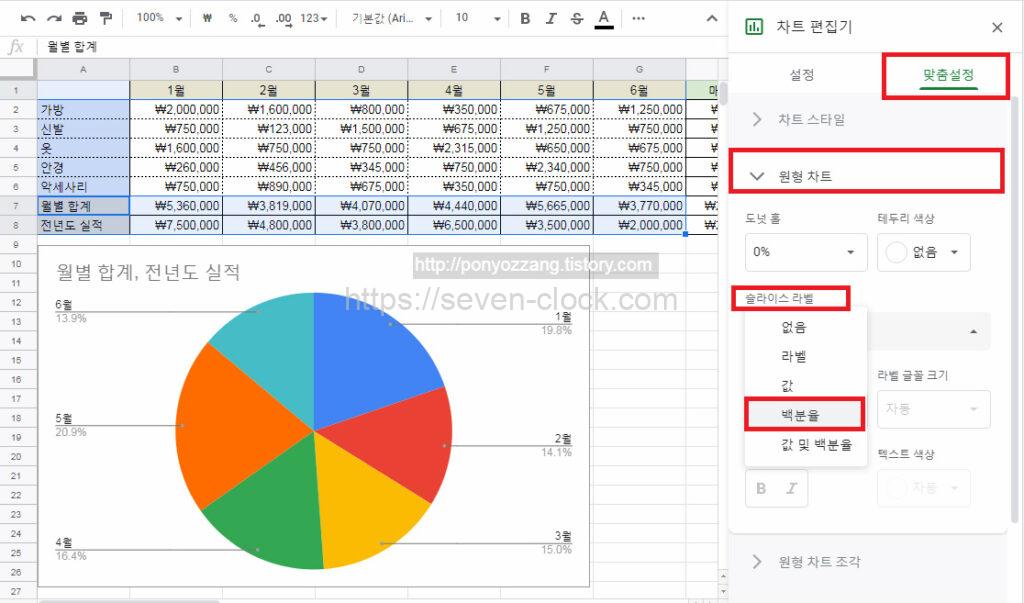 차트 편집기 – 맞춤설정 – 슬라이스 라벨 – 백분율