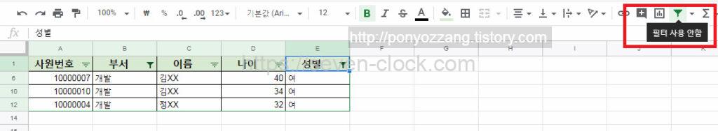 필터 기능을 해제하면서 필터링 조건도 사라집니다.