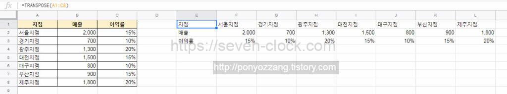 변경을 하는 방법으로 TRANSPOSE 함수를 사용하겠습니다.