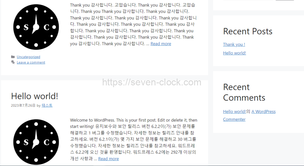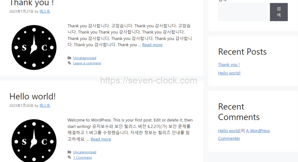 아무것도 설정을 하지 않았다면 워드프레스에서 기본으로 설정되어 있는 문자수 만큼 표시가 되고 그 뒤의 내용은 … Read more 라고 표시됩니다.