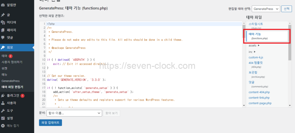 테마 기능에 아래 소스를 전부 복사해 붙여 넣습니다.